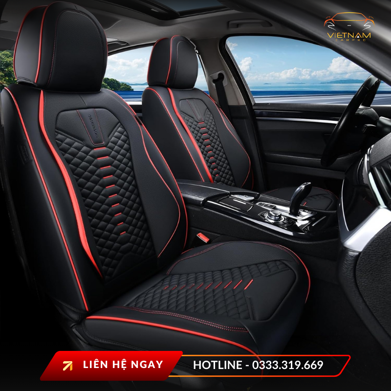 Kiểu bọc này được nhiều chủ xe trẻ lựa chọn nhờ đường chỉ đỏ tạo điểm nhấn rõ ràng. Ghế da đen chỉ đỏ mang phong cách năng động, phù hợp với sedan thể thao, SUV đô thị và các dòng xe thiên về trải nghiệm lái.