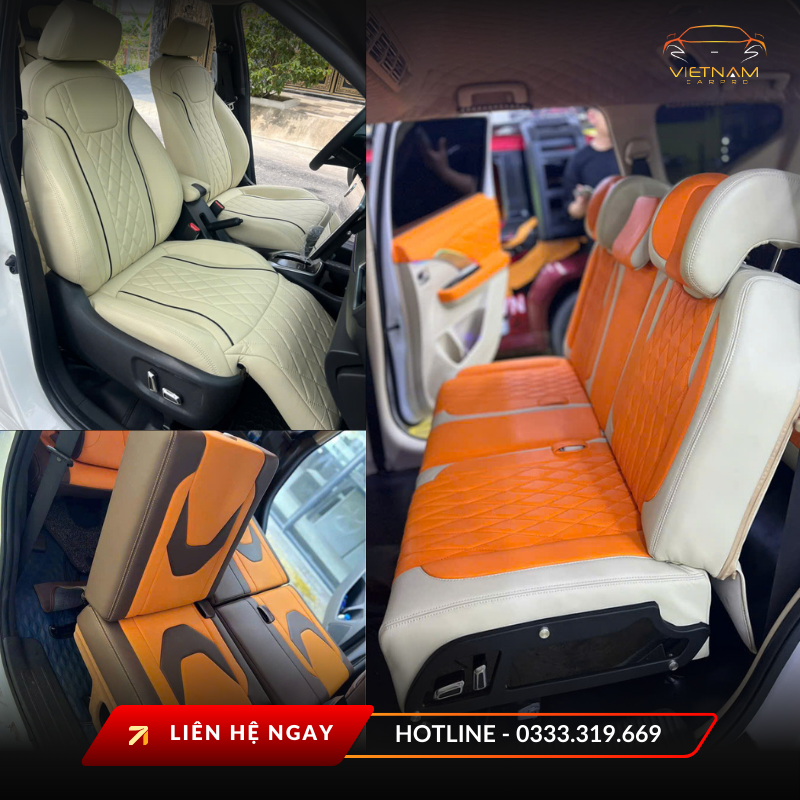 Với dòng SUV 7 chỗ, nhu cầu nâng cấp thường tập trung vào hàng ghế giữa. Người dùng có thể tháo băng ghế liền khối để lắp ghế thương gia tách rời, tạo lối đi trung tâm thuận tiện. Cấu hình này giúp khoang sau trở nên riêng tư, thoải mái hơn, đồng thời phù hợp cho gia đình hoặc xe phục vụ công việc cần sự tiện nghi cao.