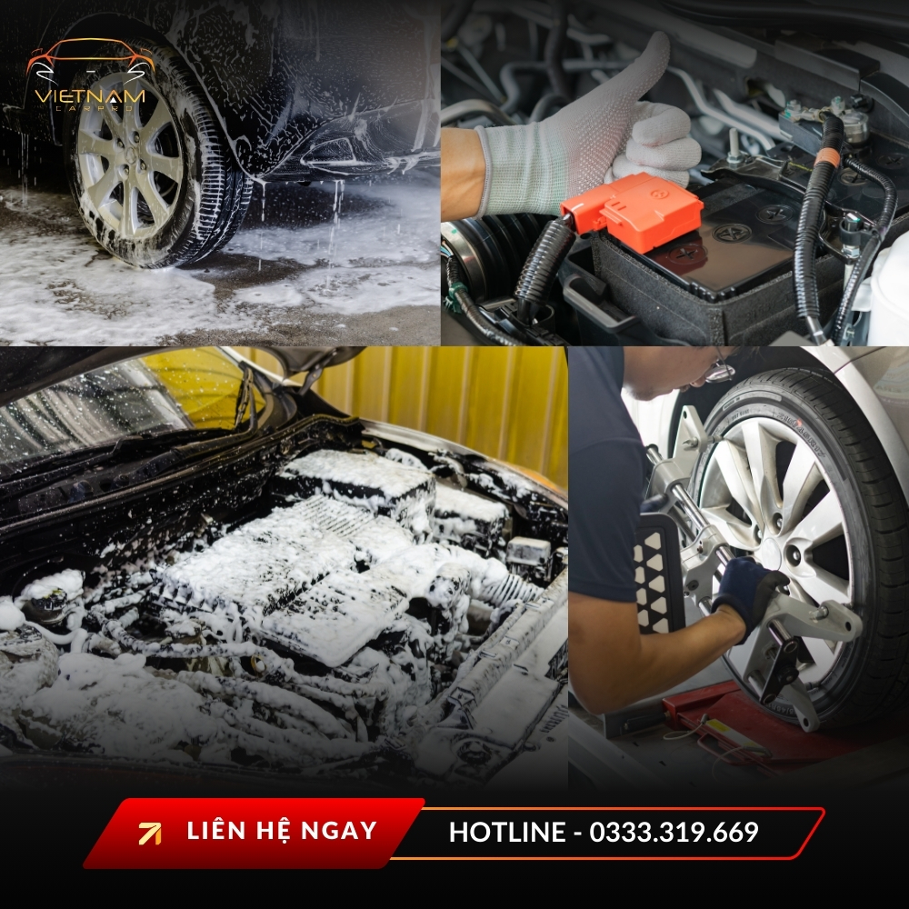 | 3. Rửa xe toàn diện | Rửa thân xe, mâm lốp, kính; xịt bọt tuyết và làm sạch theo quy trình 2×2 an toàn sơn. |